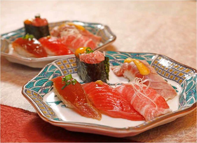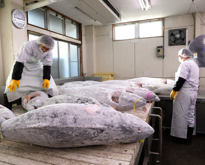まぐろの卸には、大きく分けて「水揚げ・大卸・仲卸」があります。弊社は、自由な発想で水揚げ業者から直接購入したり、大卸の水産市場荷受の競売に参加するなどして常に良質なものを買い付けています。仲卸等の市場流通を飛び越えてた買い付けが出来るため、直営店(群馬を握る、まぐろ問屋 いちもん)で安価で良質なネタを提供することができるのです。