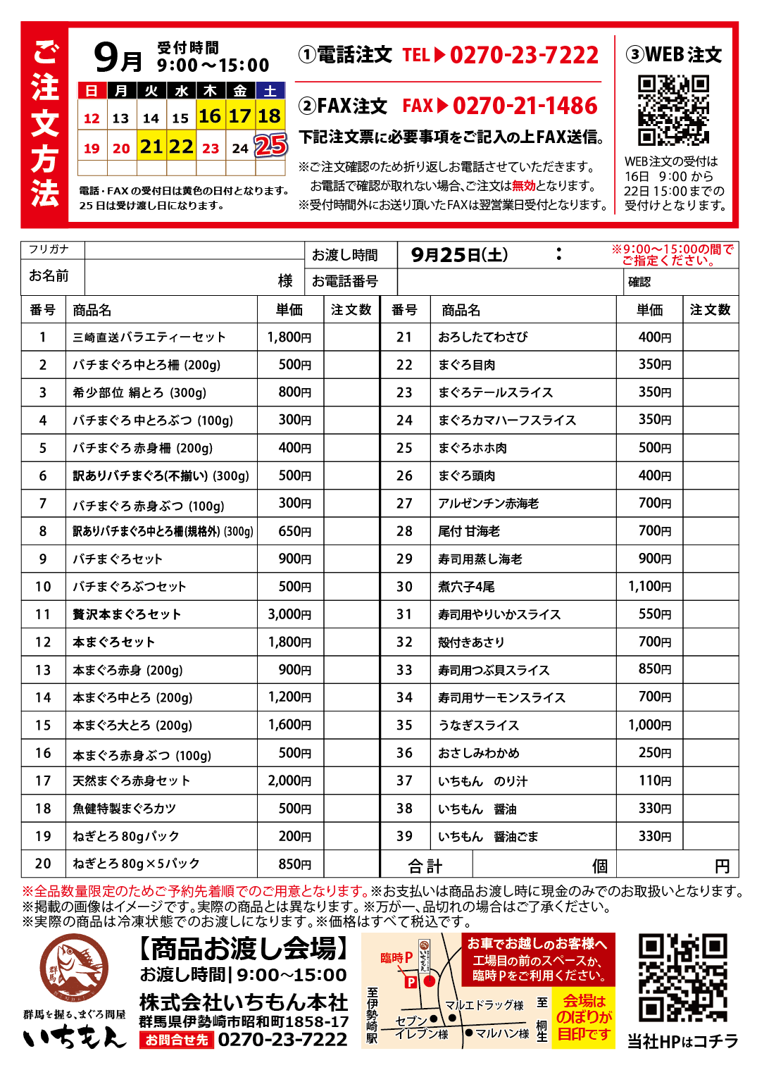 ①お電話でご注文⇛0270−23−7222までお気軽にお電話ください!