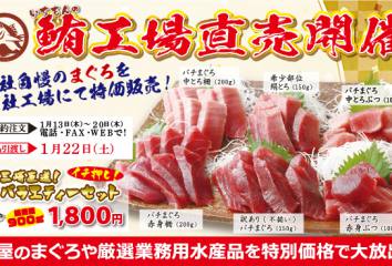 お知らせ 最新情報はこちら FacebookFacebook TwitterTwitter InstagramInstagram すべてお知らせ群馬いちもん金沢まいもん群馬を握る、まぐろ問屋いちもん重要なお知らせ 2022.03.06 春鯛フェア3/7~4/4 お知らせ 2022.03.05 営業時間短縮期間延長のお知らせ お知らせ 2022.02.17 2月26日まぐろ工場直売会開催のお知らせ お知らせ 2022.02.06 黄金いくらとギンヒカリ2/7~3/6 お知らせ 2022.01.31 創業450年の歴史を味わう!群馬を握る「糀屋」2/1(火)~3/31(木) お知らせ 2022.01.13 まぐろ工場直売会開催のお知らせ お知らせ < 1 2 3 4 5 6 7 8 9 10 11 … 13 > TOPお知らせお知らせ