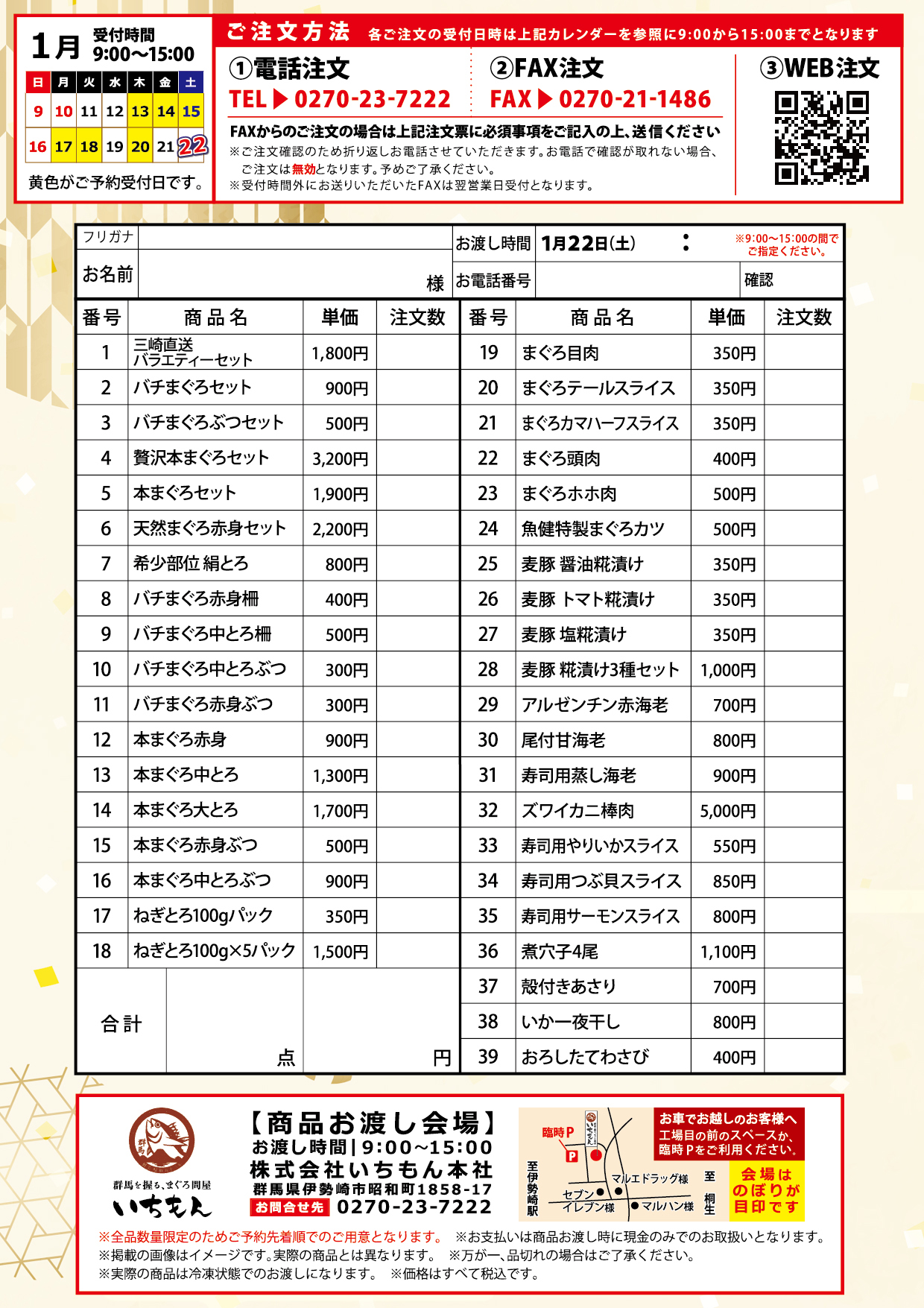 ①お電話でご注文⇛0270−23−7222までお気軽にお電話ください!