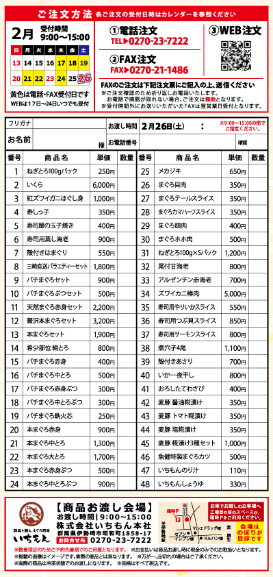 ①お電話でご注文⇛0270−23−7222までお気軽にお電話ください!